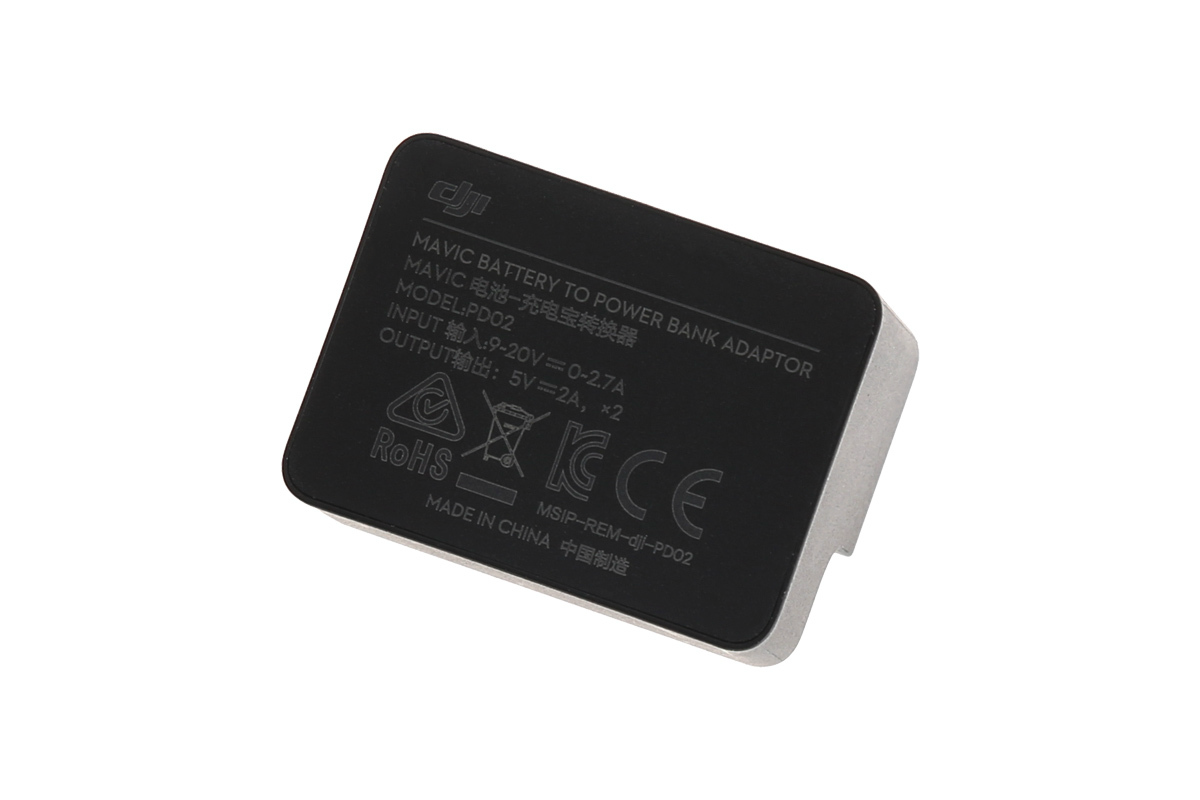 Mavic Battery to Power Bank Adaptor – адаптер для заряда от интеллектуальной батареи Mavic Intelligent Flight Battery квадрокоптера DJI Mavic мобильных устройств, таких как смартфон или планшет.